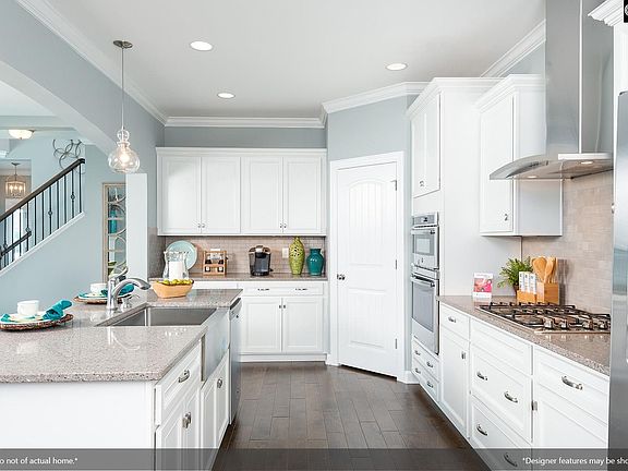 The Jensen, with a gorgeous brick front, has 3 Bedrooms, 2.5 Baths and a Formal Dining Room. The Master is located on the Main, while the secondary bedrooms are upstairs on either side of a spacious Loft. This home offers exquisite detail throughout including beautiful hardwoods and exposed beams in the Family Room. The open concept Gourmet Kitchen boasts classic dark wood cabinets, granite counter tops, a large Island, eat-in area and pantry while overlooking the large Family Room and cozy Gas Fireplace. Step in to your private Master Suite that features a luxury bathroom complete with a Barrier-free, ceramic tile, walk in shower with two shower heads. Enjoy your Covered Back Porch and a gorgeous Outdoor Brick Fireplace. The Fenced in back yard gives you that courtyard setting which includes full yard irrigation while the HOA maintains your Front Yard.