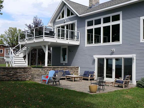 Exceptional Lake Champlain Property! From the expansive front lawn with a concrete paver driveway to the welcoming porch, you will be proud to call 722 Maquam Shore Road home. The gorgeous post and beam open interior offers a large cherry kitchen with granite tops, breakfast bar, and stainless steel appliances with ample space for the chef. The stunning kitchen opens to the dining room with a wall of sliders to the deck for eating outside and spectacular Lake views. Both rooms overlook the relaxing living room with two story fireplace for chilly nights and yes, more lake views! The master bedroom suite provides a walk-in closet, master bath with tiled walk-in shower and soaking tub. Upstairs is a huge second bedroom or family room, perfect for visitors. By the time you reach the walkout lower level, you will be in love but be prepared to be stunned! The huge entertainment room with bar, fireplace and room for your imagine to run wild opens to a spectacular patio and the backyard to the lake. With a boat launch, sea wall, and gorgeous westerly sunsets to compliment this ideal Lakefront home.