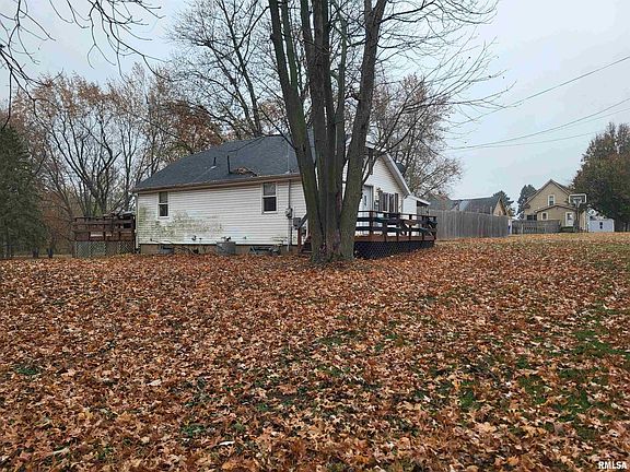 Big corner lot and fenced-in yard with play area. This 3 bedroom bungalow has a finished walk-up attic and full basement. The house was updated about five years ago with insulation, drywall, wiring, plumbing, kitchen cabinets, bathroom, and vinyl windows and would make a great investment property. Large rear deck and covered patio. Priced to sell. AS IS.