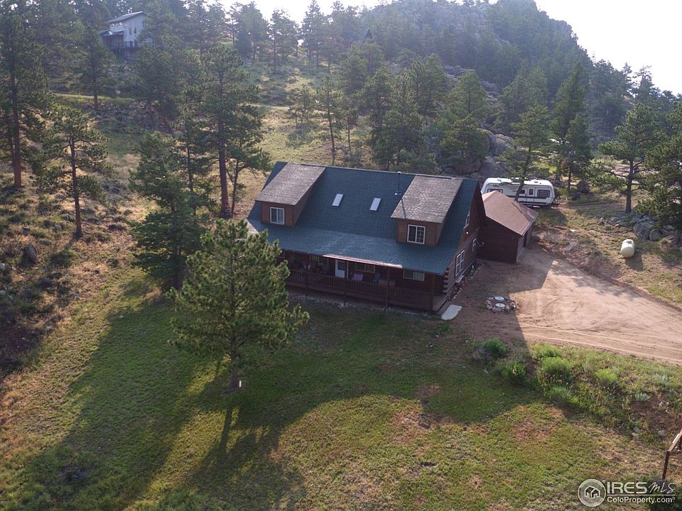 Welcome home to this nearly 3 acre lot with rock out-croppings, natural grass, trees and wildlife. The chalet style log home boasts a covered front porch and rear patio. Vaulted ceilings add drama to the main living space and a pellet stove provides cost efficient heating in cooler seasons. Another unique feature is the impressive catwalk connecting the two upper rooms. HUGE two car garage. Community maintained roads make this property easily accessible.