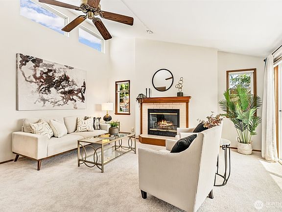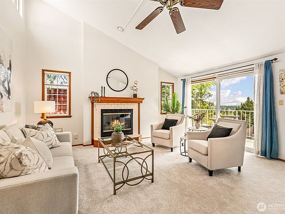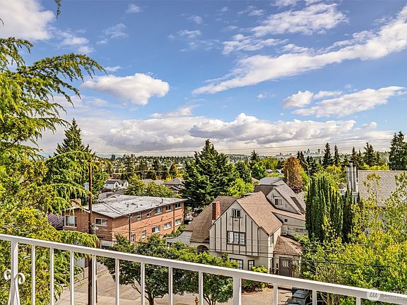 Rare Find! This light-filled 2-bed, 2-bath top-floor corner unit condo in the heart of Greenwood with sweeping views of Mt. Rainier, Green Lk, and the Seattle skyline. Lovely wood burning fireplace, vaulted ceilings & oversized windows flood the space with natural light. Fresh paint and brand-new carpet, portable A/C give it a clean, move-in-ready feel. You'll love the generous storage, secure entry & underground parking, and well-run HOA for peace of mind. Walkers Paradise! Walk to Trader Joes, restaurants, Greenwood park, and rapid transit—with quick access to Seattle, Ballard and Green Lk. Tough to find condo that combines space, style, w/unbeatable views in one of Seattle’s vibrant neighborhoods. No Stairs! Pet Friendly! New roof 2024.