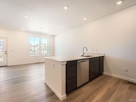 Low maintenance living in the gorgeous new Sky Ranch community. Just lock up and go. This brand new 2-story townhome in a 4-plex features 2 bedrooms, 2.5 baths, great room, kitchen, upper laundry, loft, 2 car attached garage (rear alley entry) and conditioned crawl space. Gorgeous finishes and upgrades throughout including luxury vinyl plank flooring, stainless steel appliances, slab quartz counters and more. Lennar provides the latest in energy efficiency and state of the art technology with several fabulous floorplans to choose from. Energy efficiency, and technology/connectivity seamlessly blended with luxury to make your new house a home. Homes with an alley are subject to an additional $27 per quarter. Current monthly fee subject to change. Photos are model only and subject to change.