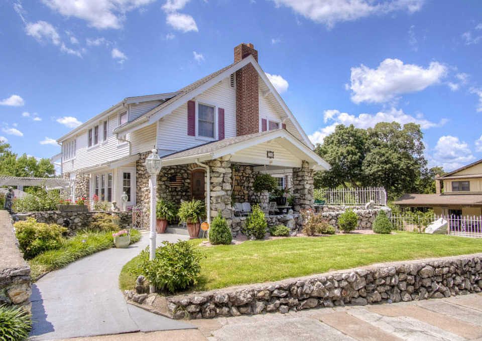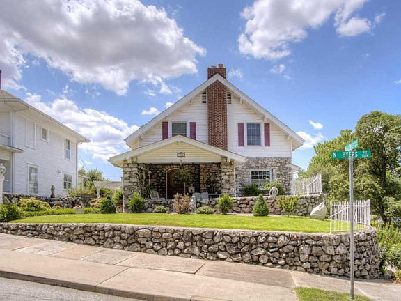 Wonderfully kept historic home! Located in the Roanoake neighborhood of Joplin, this home still holds many of its original features and charm! Enjoy the beautiful landscaping, rock detail, detached garage, and large front and back porch areas ideal for entertaining or relaxation, all of which sits on a corner lot. Large living area with attention to detail in the crown molding, stone fireplace, and window treatments. Formal dining area with built-in storage and perfect for large gatherings. Detail continues through the kitchen with a built-in desk area, center island, and white cabinetry. 4 maintained bedrooms, 3 baths, a full basement, and a large utility area complete 722 N Byers. This home has been immaculately maintained with care and is a must see.
