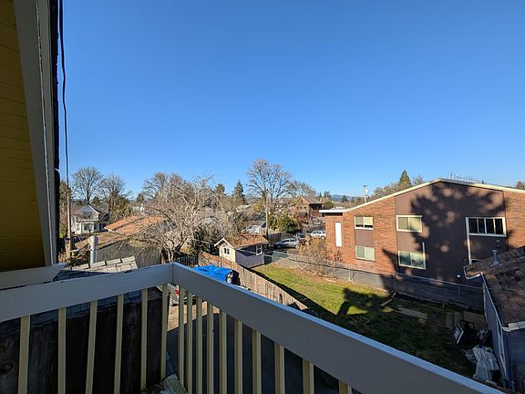 Come home to this 1 bedroom, 1 bath, 400 sq ft upstairs unit with new paint, carpet, mini-split heat pump/air conditioner. Bedroom has south facing window with lots of natural light, and there are multiple built in cabinets throughout as well as a storage closet off bathroom. This home has a small private front porch upstairs and access to shared yard, garden, and covered patio on the ground floor. Located right on the 11th street bike corridor, it is an easy walk to campus, schools, downtown, Fred Meyers, Trader Joes, 9th street shopping. Pets negotiable. Tenant pays electricity. Water, garbage, lawn care included in rent. Available on a one year lease. No laundry on premises. Off street parking available. This content will NOT be posted to craigslist. Owner pays for water, garbage, and landscaping. Tenant pays for electricity.