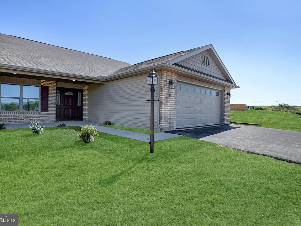 Welcome to this new construction, open floor plan home. Let me introduce you to the features this home has to offer. Beautiful brick front, with oversized 2 car garage, fully insulated, and drywalled with automatic door opener. Step inside the front door to a great room, this offers a cathedral ceiling, luxury vinyl flooring, with plenty of room for family and friends. The kitchen and dining area are next and with granite countertops, soft close drawers, self cleaning oven, smooth top range, built in microwave, 2 door refrigerator, and large island, it makes this room one you will enjoy cooking and socializing. The ample laundry room is located off from the kitchen. The guest bathroom, adjacent to the bedrooms, offers beautiful granite countertops, plenty of cabinets, and tub/shower. Two guest bedrooms fully carpeted, and a Primary bedroom with en suite bath, and walk in closet. This primary bathroom, offers a large shower, granite countertop with a 2 bowl sink vanity. This home is located within a mile to route 81, shopping, medical facilities, Chambersburg aquatic park, and schools. NO MUNICIPAL TAXES. Plan to view this new construction home while it last!!! Agent is related to the seller