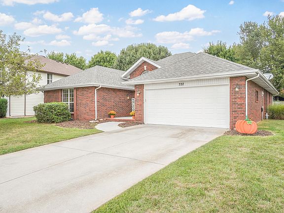 WILLARD SCHOOLS, Springfield address. All brick house is conveniently located in Kay Pointe Subdivision in Willard School District. The entryway is enhanced with floor to ceiling columns leading into great room with a beautiful brick gas log fireplace. To the right is a formal dining room or office. The kitchen/dining combo has a breakfast nook with a bay window allowing natural light and overlooks a shaded back yard. A bonus for this house is the neighborhood pool just across the street. A new roof is in the process of being installed and the house has a new HVAC system. The house sits on a beautiful large lot.