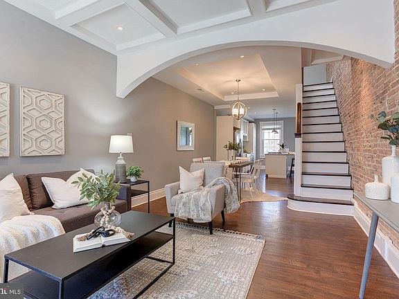 All offers are due Monday 2/21 by 2PM. Sellers are requesting highest and best. THANK YOU! Recently remodeled home in the center of Canton with stunning architectural details and parking! The home features an open floor plan, neutral paint, high ceilings, luxury vinyl flooring throughout. An amazing living room features a coffered ceiling, exposed brick wall and large sunny window. The inviting dining area is perfect for entertaining. A gorgeous eat-in kitchen hosts a breakfast bar/island, granite counters, stainless appliances, ample bright white, soft-close cabinets, farm sink, pantry and modern pendant lighting. The beautiful primary bedroom boasts a bright bay window, three closets, one with custom shelving and a primary bath with a sleek walk-in shower with subway tiling, stylish fixtures and double sinks. There is a second upper level bedroom and second full bath. On the lower level is an optional third bedroom, a third full bath, a laundry room and office or bonus space. Outside is a charming deck, and a parking pad, a must-have in Canton! The location is fabulous just blocks from Patterson Park and Canton Square.