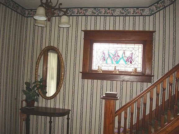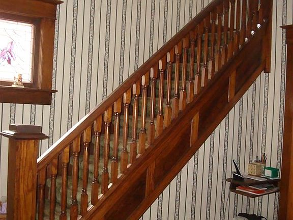 Turn of the century home with original natural woodwork. Pocket door from foyer to living room. Nice front porch. Heated sun room clear across back of house 24 x 12, plus deck. Drive off the street through lot to alley. Garage is 30 x 24. Basement has a rustic finished area, workshop, half bath.