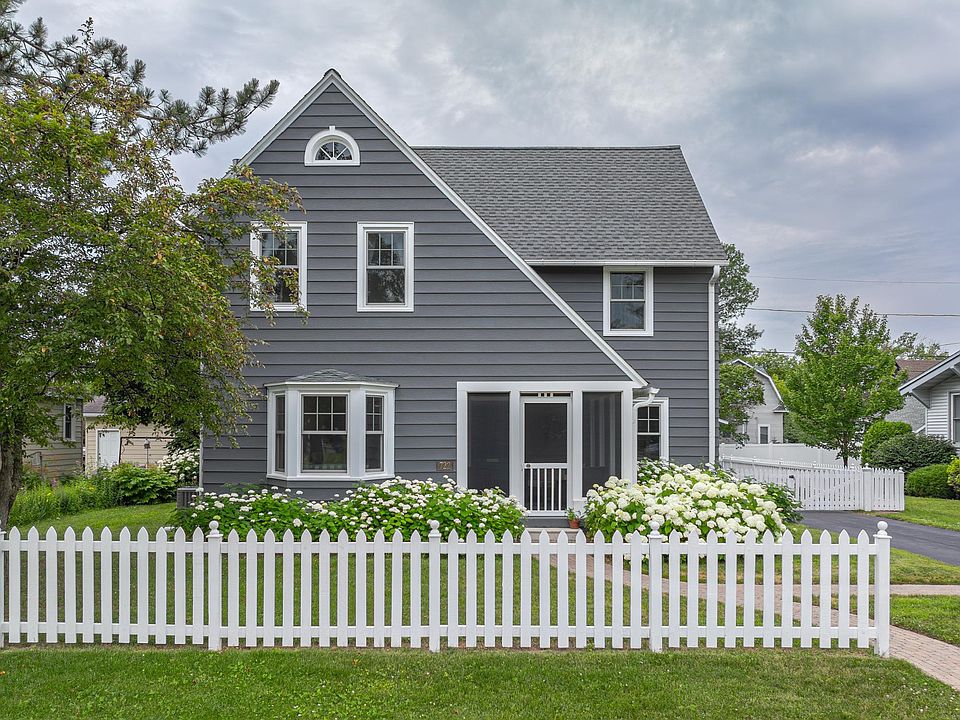 This fully restored historic 3-bedroom, 2-bath home is now available for the first time in over 40 years. Both the home and the yard have been lovingly cared for, offering elegance and functionality. The entrance features a nostalgic picket fence, brick pathway, and a welcoming screen porch. Inside, the living room boasts a handsome gas fireplace, 6-panel windows allowing natural sunlight, and a bay window with a window seat. The first floor also includes arched doorways, built-ins, corner China cabinets, a wall of glass-front bookshelves in the library/den, cherry-finished kitchen cabinets, granite countertops, stainless steel appliances, a walk-in pantry, and a modern full bath with laundry. Upstairs, you'll find a remodeled bathroom, 3 spacious bedrooms, and hardwood floors, with a carpeted bonus room on the third floor. Outside, a mature, stately maple tree shades the fenced-in yard and overlooks the deck. The property also includes a blacktopped driveway and a 2-car garage.