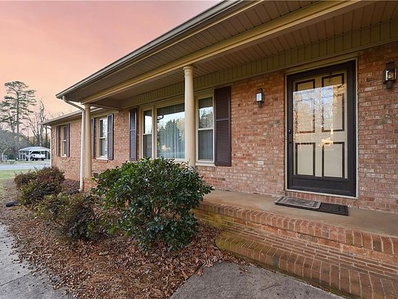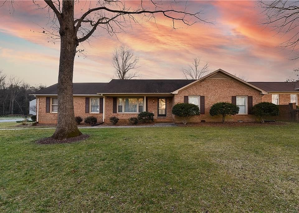 Classic brick ranch with a rocking chair front porch on a large corner lot with mature trees. Convenient to shopping, dining and quick access to the highway! This home has three bedrooms and two full baths, a family room, a formal living room and a laundry room off the kitchen. Features a single car attached carport, a storage building and a nice flat yard back yard. This home is being sold as-is. Please see private remarks.