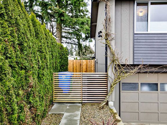 Do not miss this reimagined 70's split-level! Mid-Century finishes are paired with an open-concept great room, vaulted ceilings & hardwood floors. The kitchen includes butcher block counters, SS-appliances & a farm sink. The large, secluded lot is a perfect setting for the bespoke-engineered deck. The retractable roof & modern perimeter provide privacy & are perfect for NW weather. The yard was thoughtfully designed. Ample parking makes this off-street lot a perfect choice for city living!