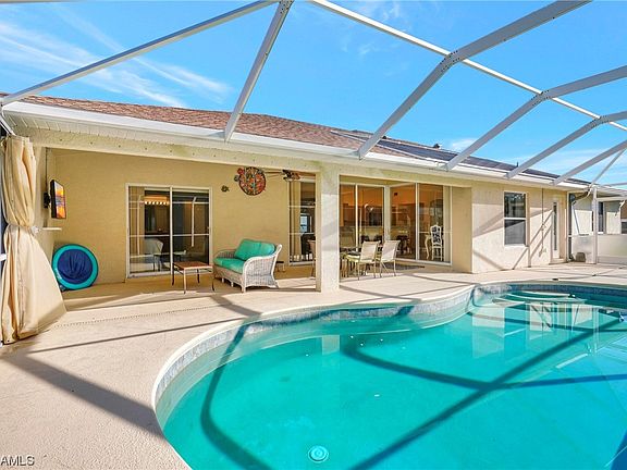 NO FLOODING HERE! This Southern Exposure 2003 built home is only a short distance to the Yacht Club and downtown Cape Coral. Roof, Gutters, and A/C all new in 2023. This home features 3 bedrooms, 2 baths and a den that could be used as an office. The custom designed kitchen has stainless steel appliances with high grade quartz countertops. The Master Bedroom has large walk-in closet and master bath with dual sinks and huge walk-in shower. The guest bedrooms and bath are spacious with bath door to the pool. The screened pool area is ideal for entertaining with large sitting area with privacy.