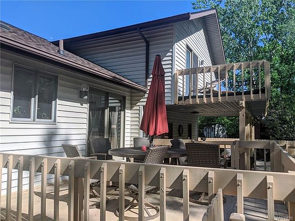 Charming 3/4 bedroom, 3.5 bath Contemporary style home offers lots of character & a great floor plan. Open foyer, spacious living room, dining room, large family room w/ a custom stone fireplace, built-ins, wet bar, wood burning fireplace & sliding door that opens to a generous size patio. Updated eat-in kitchen w/ tons of Cherry cabinets, granite counters, extra large pantry & sliding door that leads to a deck, in-ground pool & fully fenced yard. First floor office/potential 4th bedroom offers built-in wall book cases & sliding door that leads to a small private patio. The Master bedroom features a Jacuzzi tub, stand-up shower & a deck overlooking the yard. Valuated ceilings throughout, sky lights, in-house radio/intercom system, first floor laundry/mud room & partially finished basement. New roof, A/C, gutters & skylights in 2018. Former security system can be re-activated. The in-ground pool has been professionally opened & closed since 2008. Seller is in the process of removing wallpaper in the upstairs bathroom, repainting, installing a new vanity & double sinks. New doors/frames will be installed in all 3 bedrooms & the upper bathroom.