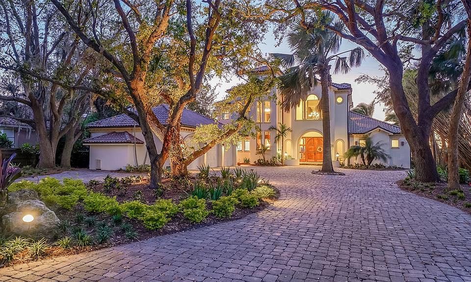 You’ve found your personal paradise. Welcome to 722 Sarabay, a private, gated two-acre estate with jaw-dropping sunset views. This custom-built residence features three bedrooms, an office (which could be a 4th bedroom), home theatre room, and large upstairs bonus room, and much more! Upon entering through the double custom hardwood front doors, your eye will be immediately drawn to atmospheric bay views through the massive windows. Stepping out through the sliding glass doors, you will encounter the heated pool and spa as well as your own private beach, set high above the bay with epic views. Like to boat? The property has excellent boating water with a long custom dock and boat lift. The kitchen features an oversized bar, Dacor and Sub-Zero appliances, built-in wine refrigeration and abundant storage in the custom kitchen cabinetry. The master suite is on the second level and features a balcony overlooking the water, an oversized walk-in closet built-ins and luxurious bathroom. Upgrades and unique features include custom koi pond, detached summer kitchen structure, detached three car garage with storage space, built-in saltwater fish tank, whole-home generator, and massive outdoor covered dining area. The front yard entry is second-to-none and includes new gated entry, custom stone columns, all NEW landscaping, irrigation, and lighting to complete your private oasis. The long private drive offers a true sense of privacy and seclusion, and only a lucky few can boast about owning a backyard that looks like a sandy beach adorned with towering coconut palms! Conveniently located just south of Sarasota, this property offers easy access to beaches, dining, shopping, and much more. Schedule your private tour of this outstanding offering today.