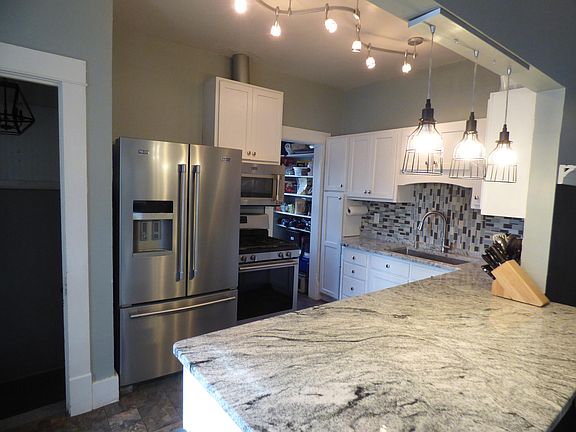 From porch to patio this home has some fantastic features. Beautiful interior with charming surfaces and fixtures. Updated kitchen and bathrooms. Big living space and more. Fenced yard with a large patio area, tree house, shed, and small garage. Located in a nice area close to trails, park, and more.