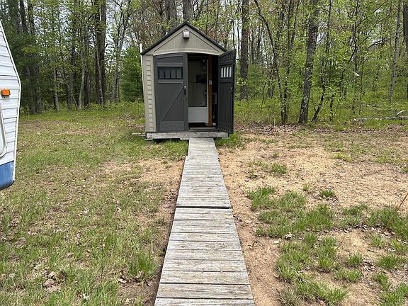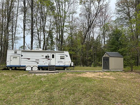 One of a Kind! Vacant 1.25 acres with awesome amenities. Entertainment central, boasting an outdoor pavilion equipped with a bar featuring a cooktop, fridge and sink. Vinyl shed that houses a shower/tub combo and toilet offers modern convenience. New septic. Fire pit to relax around. Comes with a 2004 32'camper(titled) with slideout that sleeps 10. Storage shed that includes loft storage. AND just ride out of your driveway and hop on trails! A fantastic spot to launch all your outdoor adventures! Make this yours...Set up your showing today!
