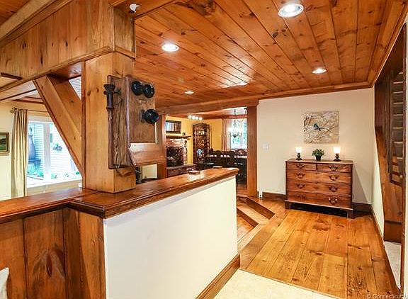 Surrounded by beautiful gardens and set on 1 1/2 acres, the location of this 4 bedroom, 3 full bath colonial offers your own private oasis on a private cul-de-sac, yet only minutes to Rte 1 and the center of town. The wrap around covered front porch overlooks the courtyard, gardens, and a vine-covered arbor leading to the volleyball court. You'll love the rustic charm of the interior and modern updates, featuring exposed beams, wide-planked rustic pine floors, an updated kitchen with plenty of built-ins, pantry and storage space. A wood-burning stove in the living room will provide hours of warmth during the cooler New England nights. The large dining room features a wood-burning fireplace. An office, den (possible first floor bedroom), full bath and laundry room are also on the main floor. There are 4 additional bedrooms on the second floor, including the master bedroom. A finished walk-out lower level offers a family room and wet-bar with built-in seating providing an additional 450SF of living space. The backyard was made for entertaining... with multiple decking, a covered detached screen in sunporch affectionately known as "the Shack," a hot tub, koi pond, and more. Friends & family will never want to leave! Ask for list of updates/improvements.
