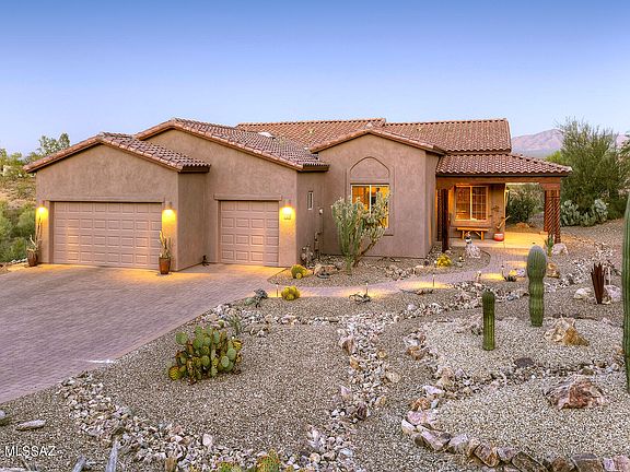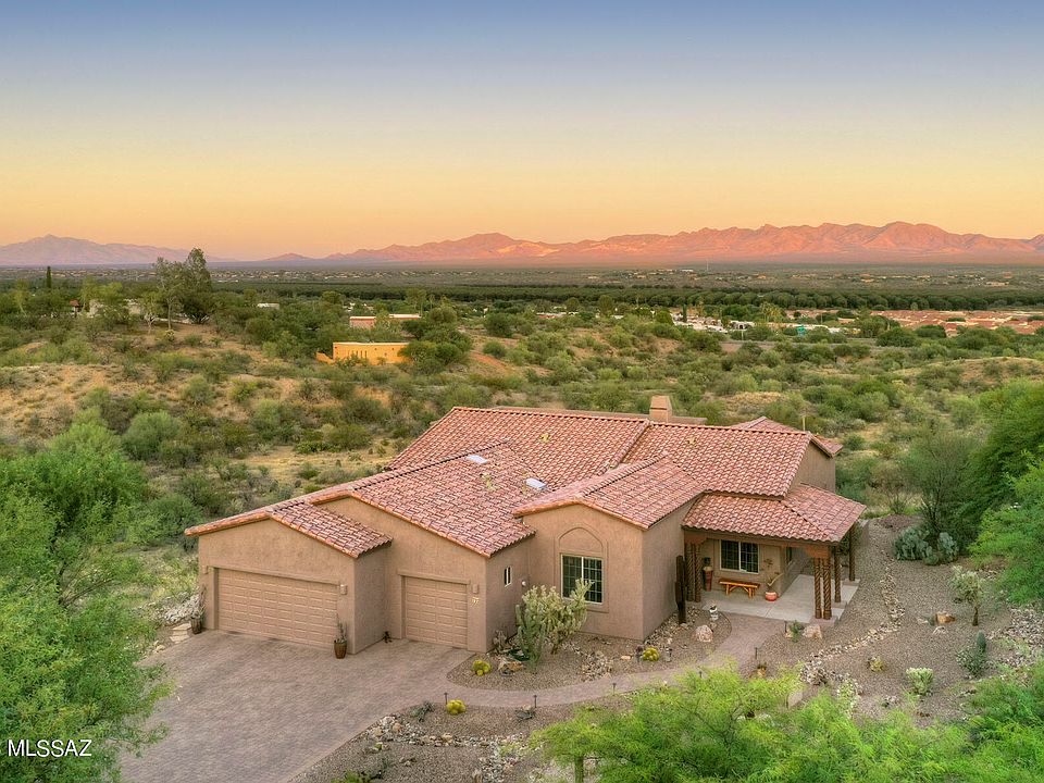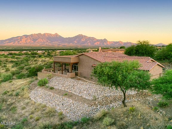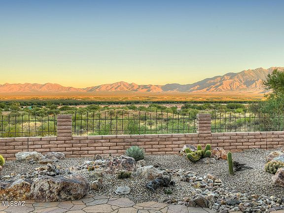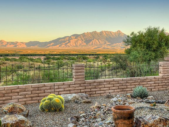 Magnificent mountain views and traditional desert styling set the stage for this grand estate! Curb appeal is evident as you travel down the impressive drive and see the Santa Ritas towering behind the house. An airy entry foyer opens to the spacious great room where the mountain views are front and center. Oversized wood framed sliders bring the outdoors in and a gas fireplace warms the room. The kitchen exudes luxury with maple cabinets, granite counters and stainless appliances. A breakfast nook is perfect for morning coffee and a separate dining room plays host to more formal events. The large den boasts plenty of space for a dual office or a daybed for extra guests. Step out into the back yard living area and you will be awed by the Santa Rita Mountain views that provide the back drop for entertaining. Spacious and open to the natural desert, the memories created on this patio will be everlasting! Beautiful slate flooring and a gurgling fountain give this special back yard a resort-like feel. Back inside, retreat to your master suite where the luxurious bathroom feels like a spa. Split vanities, a huge walk in closet, and a walk in shower will have you feeling permanently pampered. Wake up in the mornings to those awe-inspiring mountain views! The guest en-suite is located on the opposite side of the house for ultimate privacy for all. If you are looking for a home that encompasses the best that the desert has to offer, one that revolves around both indoor and outdoor living spaces with spectacular mountain views, if you are looking for that very special place to spend the next chapter of your life, if you are looking for an impressive estate that will continually amaze you, than you must see this home!
