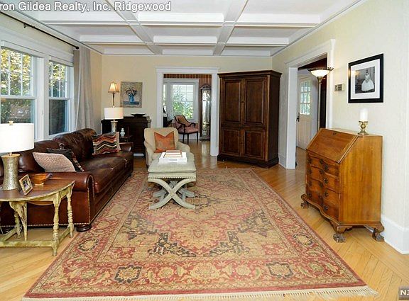 Move right into this 4 bedroom, 2 full and 2 half bath updated Colonial. Attention to detail can be seen on both the inside and outside of this beautiful home. The living room features coffered ceilings, a wood burning fireplace and built-ins. The dining room also displays coffered ceilings. A bright modern eat in kitchen features custom cabinets with a tasteful color palate and a wet bar. French doors open to a paver patio and private rear yard. Upstairs you will find a bright master bedroom with his and her walk in closets, two additional bedrooms and an updated full bath. The third floor contains another large bedroom with full bath. The basement is finished with family room, powder room, laundry room and lots of storage. Additional features include a paver driveway, sprinkler system, newer windows throughout, hard floors (except 3rd floor), two car garage. Wonderful location walking distance to school, NYC transportation and town. You do not want to miss this wonderful home! For more information about this listing, please contact Megan Fox, (201) 362-6789 at Marron Gildea Realty, Inc. Ridgewood, (201) 445-8880