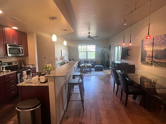 Downtown Golden Luxury Condo with rooftop patio for rent. Looking for roommate(s) to share stunning fully furnished Luxury 2 Bed / 2 Bath Corner Unit Penthouse Condo in downtown Golden, a secured elevator-assessed building. Available for term beginning January 1, 2025 for 7 month lease ending July 31, 2025 with option for longer term. This quiet, peaceful unit with upgraded fixtures, appliances, and hardwood floors is flooded with natural light that creates a warm inviting atmosphere. This large unit provides an open-concept living space that flows to the dining area, kitchen area, and living room for entertaining. The unit features a spacious kitchen with granite tile countertops, stainless steel appliances, a separate island with bar seating, and with cooking essentials provided. Unit has a rooftop patio with patio furniture and gas grill with views of North and South Table Mesa. In unit washer and dryer is an additional plus. 1 covered parking space is available along with uncovered parking. The private bedroom available to rent can come furnished or unfurnished. Option to have the bedroom furnished with with single bed or bunkbed with 1 or 2 desks plus dresser. One engineering professional in the other bedroom who works full-time and is a recent graduate of Mines. Must be relatively quiet, drug free and able to clean up after themselves. In downtown Golden on Washington Ave (main street in Golden) with tons of dining, shopping, and a 10 minute walk to Colorado School of Mines campus. Only a few blocks to the recreation center, library, river walk, tubing, and biking/hiking trails. You don't want to miss out on viewing this gorgeous condo. $750 per person (double occupancy/shared room) per month or $1,500 per month for single occupancy bedroom. Security deposit: $750 per person (double occupancy/shared bedroom) or $1,500 for single occupancy bedroom. Trash/recycling and water/sewer included. Tenants are responsible for gas, electricity, and cable/internet. Lease Term: January 1, 2025 - July 31, 2025 with option for a longer term. No pets. No Smoking.