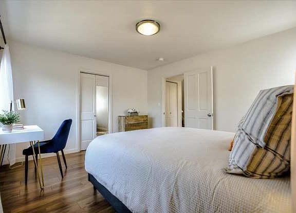 Two story standalone unit, private entrance in front courtyard, large bedroom with walk in closet, main living area upstairs with new kitchen, wine bar, open concept, vaulting ceiling, Bay view