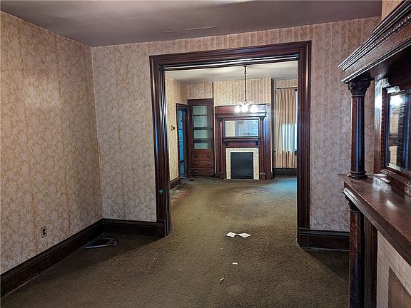 Solid three bedroom, one and a half bath on a level lot. All systems in working order. Plenty of potential. Great starter home or investment. Needs TLC to return to its glory days. Four beautiful fireplace mantle surrounds. In LR,DR, and two bedrooms. Huge Master Bedroom with unique corner bench. All natural woodwork, with built in cabinets, cupboards, mantles, etc.