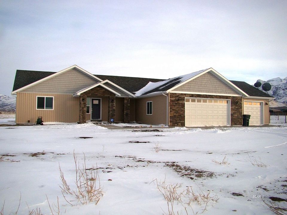 Gorgeous, nearly new 2,244 sq. ft., 4 bedroom/2 bath home with 1,052 sq ft. attached garage, per appraiser. Upon walking through the front door you enter the open floor plan with vaulted ceiling, large windows and sliding glass door showing off the views of the Ruby Mountains. Slider opens to a covered, lighted patio, perfect for entertaining. Open concept sports large living room, dining area and spacious kitchen with granite counter tops, stainless steel appliances, including double ovens ,gas cook top, island and an ample pantry. Master has a full bath, with double sinks, jetted tub, separate tiled shower, and walk in closet. Home is situated on 4.07 level, cleared, acres. Includes a large dog run. Storage shed is negotiable. Schedule your appointment to see this incredible property today!