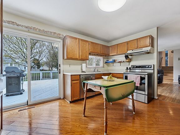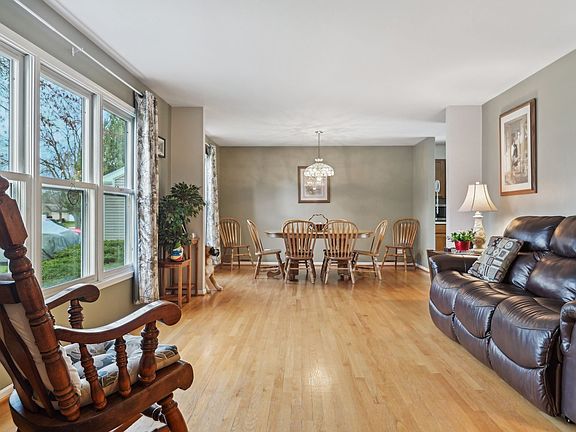 Welcome to this highly sought-after Barkley model featuring 3 spacious bedrooms, 3 full baths, and over 1,800 square feet of comfortable living space. Step inside to beautiful hardwood floors that flow through the inviting living and dining rooms. The oak kitchen offers abundant cabinetry and opens to a lovely deck-perfect for morning coffee or entertaining guests. Enjoy cozy evenings in the family room with its warm wood-burning fireplace, or head downstairs to the finished rec room for extra living or play space. The master suite boasts double closets and a private bath, offering a perfect retreat. Outside, you'll find a great backyard with a large storage shed and a 2-car garage for added convenience. With an updated furnace and A/C, a newer water heater, and a roof approximately 10 years old, this home is truly move-in ready. Don't miss this one!