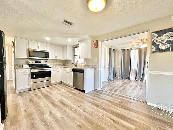 This beautifully updated 2 bedroom 1 bathroom home is ready to be enjoyed! It's not often you find a 2/1 that offers you a size-able fully fenced in yard, garage for parking or storage, washer and dryer.l included. The home resides in Jasmine Estates, well known for its location. Very close to preferred shopping, Werner Boyce Salt Springs State Park, Weeki Wachee springs, Green Key Beach and more! Reach out to book a tour today! We are looking for a tenant that will take great care of the home. The home is being rented with a washer and dryer included. Pets are welcome, if they are. A larger breed we would need to arrange a time to interview the pet.