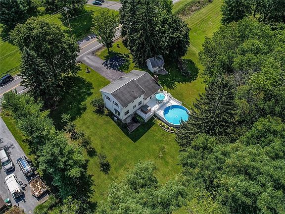 Beautifully maintained Colonial on gorgeous 1 acre private lot! Updated kitchen with Corian counter tops, newer appliances, updated flooring, fixtures, etc.. Gorgeous hardwood floors in the living room & upstairs. Welcoming family room with brick fireplace & gas insert with remote, new flooring (2010). Updated half bath (2008)& updated full bath with walk-in shower (2006). Wall mounted a/c unit upstairs. New front windows(2008). On-demand hot water system(2009), boiler (2011). Refreshing above ground pool (2000), new liner (2016), hot tub (2012).