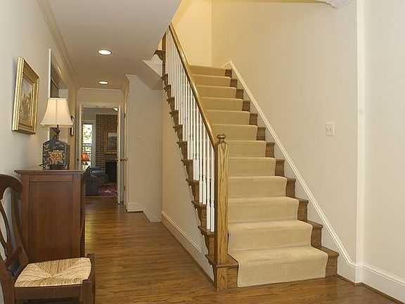 NEW LOW PRICE! REDUCED $30K! Luxurious pond view townhome w/3BRs & Den, 3.5 BAs & 3 FPs in desirable Evans Mill Pond community. HDWDs, 2-car gar., updated KIT & baths, entire interior recently painted, new roof in '04, beaut. new landscaping. Master suite w/cozy fireplace, WIC & renovated skylit bath. Huge rec room opens to back yard & pond. Shows like a model home!