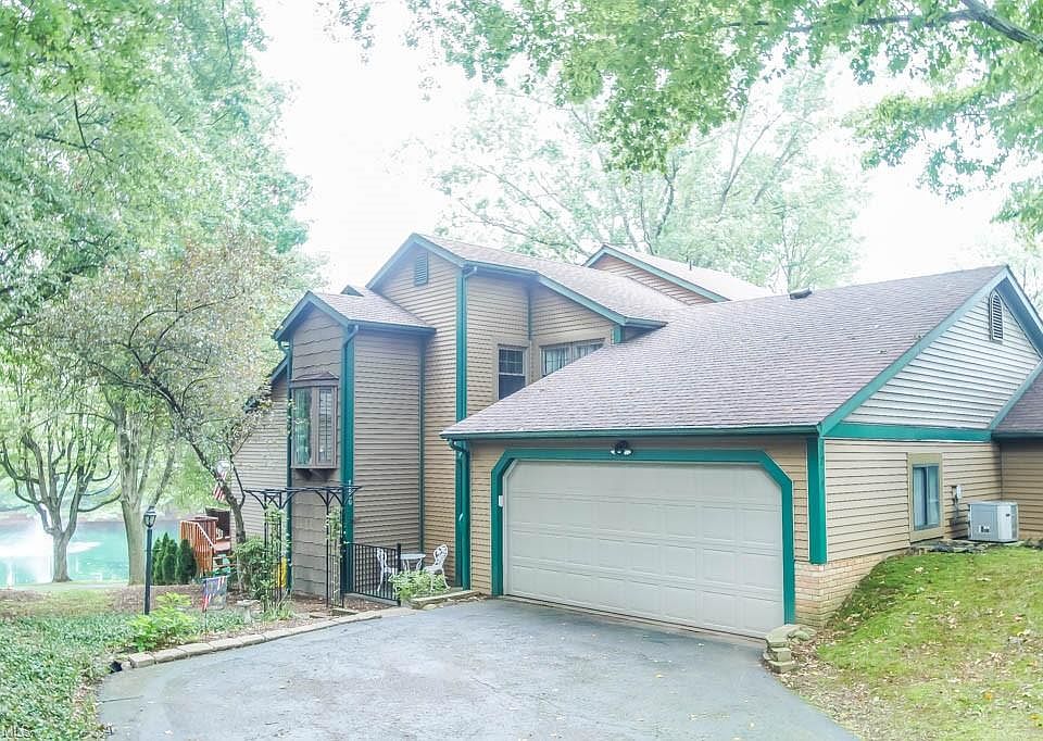 Call or text Listing Agent Jose Medina at 330-605-9185 for a private showing. Breathtaking 2 bedroom, 2.5 bath Woodlake condo with fabulous lake views! Completely remodeled inside, this home is sure to impress. Youâll enter to gorgeous hickory wood flooring that weaves its way throughout most of the main level. Continue into the exquisite great room boasting lake views, cathedral ceilings and a lovely gas fireplace. Find your culinary inspiration in the delightful kitchen with custom soft-close cabinets, stainless steel appliances, granite counters, tile backsplash and a pantry. It opens to the dining room with sliding glass doors to the back deck. First floor bedroom with a walk-in closet and direct access to a full bath. Upstairs, the master suite offers a walk-in closet and a private full bath with a tiled walk-in shower and dual sinks. Outside of the master, enjoy a second floor loft overlooking the great room - nice area for an office or library. Enjoy over 500 square feet of living space on the finished, walkout lower level! There's a huge family room with a stone gas fireplace and wet bar, a half bath and laundry (washer and dryer convey). Walkout to the covered patio. You will love spending time on your newer composite deck off the kitchen with built-in benches overlooking the stocked lake with water feature and a walking path! Move-in ready home - don't miss out!