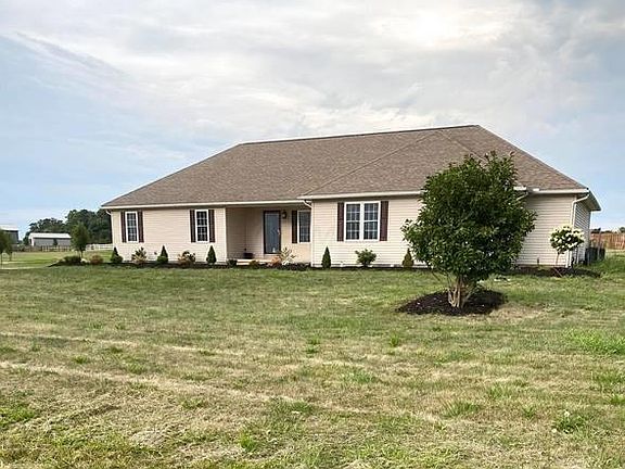 Ranch home on 1.84 acres. 3 bedrooms, 2 full baths. Open concept living, dining and kitchen/great room with cathedral ceilings. All kitchen appliances and washer and dryer stay. Sliding glass doors exit to the deck and fenced yard. Master suite features private bathroom with double sinks and two closets (one is walk-in). All new carpet on main level. Large closets. Full basement, partially finished with 2 additional bedrooms and storage area. Oversized 2 car attached garage with added cabinets. Main floor laundry.