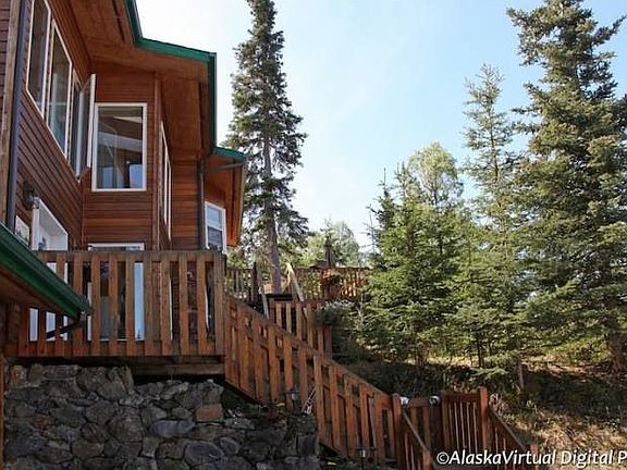 Stunning Views of McKinley, Anchorage, and the Inlet! Lots of Room for Family & Summer Guests w/ 4 BRs, 2 Guest Rms and 3 1/2 baths. Open Floor Plan w/ Soaring Ceilings, Sunken LR & Real Fireplace. Secluded Decks for Family Time, Entertaining & Sunsets. Kitchen Granite, Lrg Gas Cktop. Shower for 2 in Master. Mins from Hilltop Ski and Bike Trails! Programmable Lights! See Supplement