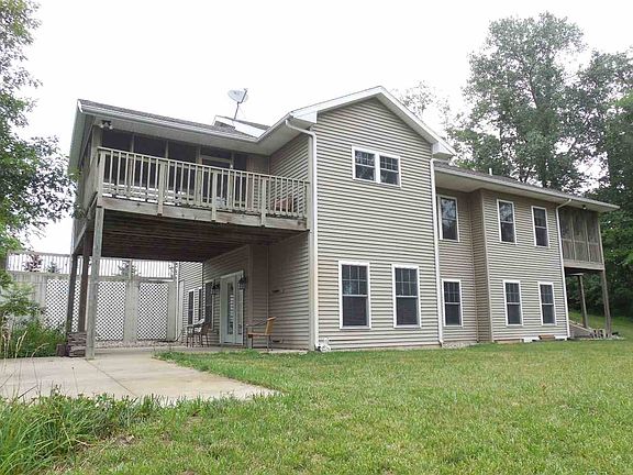 Complete privacy on 5 (4.94) acres of lakefront. Over 500 feet of shoreline! Like new condition. This year around retreat type home is special. Screen porches on each end of the house both have the most incredible lake views. Well thought out floor plan. 10 ft. ceilings add elegance to the home. Fireplace in lakefront living room. The master suite is one of the most restful rooms this 30-year Realtor has seen with all lake view, its own private screen porch, private deck, large bath & closets. Laundry on main level. Kitchen also has wonderful VIEW. Only five executive homes are built on this lake... all with complete privacy and high pride of ownership. Patio & winding trail down to the lake & pier. Big view of stars at night. Watch the deer play - lake & woods view. Ideal setting for naturalist, birders, or just people seeking peace & privacy at their home place. 3 full baths. Light-color wood trim & cabinetry throughout. Geo Therm open loop heating & cooling. Lower level is not basement like - it is all open to the lakefront. Short notice showing is possible - prefer 24 hours. Fish for bass, bluegill & sunfish.
