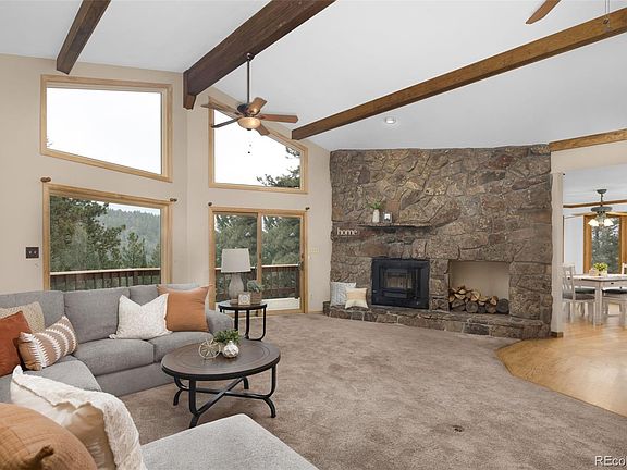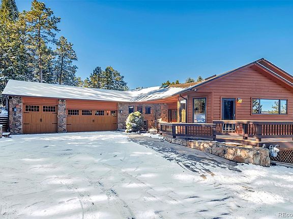 An extraordinary opportunity awaits in the highly sought-after Bluffs subdivision. Rarely do homes in this exclusive neighborhood become available, and this one is an absolute gem. Nestled on a sprawling 5-acre estate, you'll find yourself just a 30-minute drive from Denver, yet it feels like a world away. Welcome to your secluded paradise! Backing to open space, revel in unparalleled privacy and scenic views that stretch as far as the eye can see. Experience the ease of main-floor living with a primary bedroom, bath, and an elegant office. The primary bedroom is a true retreat, featuring a gas fireplace, a luxurious 5-piece bath with a soaking tub, french doors to the back deck and a spacious walk-in closet. The generously sized kitchen boasts a center island, slab granite and an inviting eat-in area, perfect for culinary adventures. Enjoy cozy evenings by the wood-burning moss rock fireplace in the great room, complete with a wet bar, soaring vaulted ceilings, and an abundance of windows to soak in the scenery. Downstairs, you'll find a flexible rec room/family room with a walk out/patio area, gas fireplace, a secondary primary suite for guests or family, and two additional bedrooms with a shared bath. Plus, there's a dedicated craft room and a bonus room that's ideal for a home gym. Brand new decks provide ample outdoor space for relaxation and entertainment. Completing the package is a 3 car garage, gardening shed, and water feature. This home is a fantastic canvas for your creativity, ready for your vision and personal touches to make it uniquely yours. Due to the interest in the property, we have set an offer acceptance deadline of Tuesday 11/14/2023 at noon.