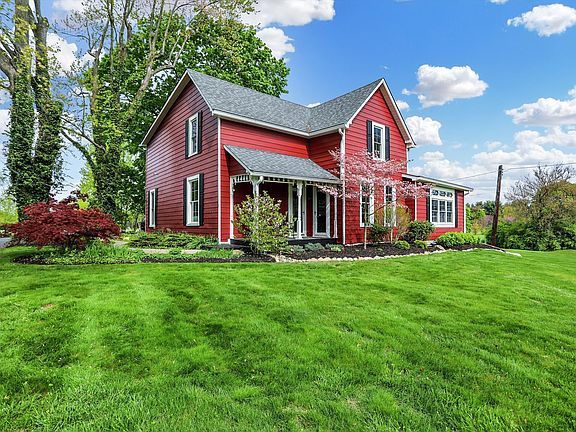 Once in a lifetime opportunity to own and occupy this restored 1875 farmhouse! This 4 bedroom, 3 bathroom farmhouse sits on almost 9 acres in desired Franklin Township. Over $600,000 of improvements to the property by current owners! Large, 3 car detached garage, huge 54X30 Timberpeg barn perfect for parties and entertainment! 11,000 square feet of stamped concrete, large fire pit and stage. You must see this property in person to truly appreciate the setting and beauty. Mature trees throughout. The farmhouse has been completely updated and professionally decorated. Improvements/Structures on the property include the remodeled farmhouse, 3 car detached garage, a huge party barn, and original milk barn. Just a few of the recent improvements include: approximately 4 acres of site work/clearing, connection to city water, irrigation system that covers approximately 2 acres, bridge installation the crosses the creek, 11,000+- installation of stamped concrete patio with 2 raised areas for stage/band, huge fire pit area, 1020 sq foot walkway to bridge, epoxy floors in barn, new electrical, beverage cooler, whiskey barrel themed decor throughout party barn, and a 600+ foot privacy fence. Hurry, this opportunity will not last long!