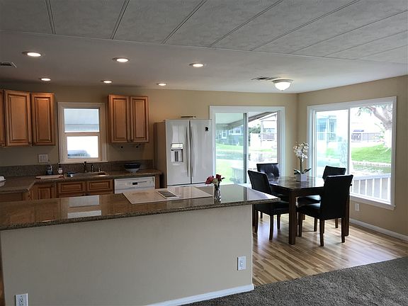 Perfect sized home to entertain, but a little to small for guest to remain!!! View! View! View! Open Concept floorplan overlooking a pond in this beautiful community! Kitchen boasts granite counter tops, newer wood cabinets, center island w/cooktop & breakfast bar, beautiful wood laminate floors; new carpet; newer vinyl windows; base molding; upgraded baths (granite counters in both, guest bath with newer vanity, shower); full-sized laundry closet. Covered 3 car carport. Fantastic Community & Amenities