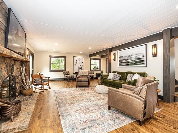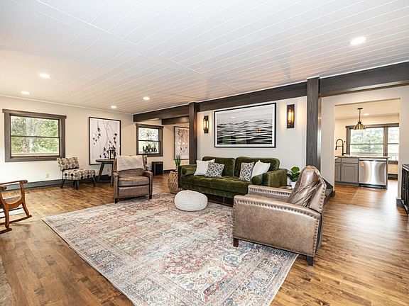 The ultimate lakeside retreat awaits you! Tucked away on 719 acre crystal clear - Two Sisters Lake. The property offers 194’ of sandy waterfront. Inside, feel captivated by the exquisite completely remodeled interior ft. high-end finishes throughout & an inviting ambiance. Property could be purchased turnkey! The primary BR on the top level gives “birds-eye views”, large walk-in closet, en suite w/soaker tub & tiled shower & laundry—making your daily routine a breeze. Whether you're cooking for family or hosting, the custom kitchen w/top-of-the-line appliances is designed for both styles of entertainment. Two LLs & an addtl living room w/wet bar! An expansive wrap-around deck provides an ideal setting for relaxing or summer bbqs w/stunning views. A pier & storage shed are located by walk or any vehicle access! A large det. 2-car garage w/storage above ensures a clutter free environment. This property is more than just a home; it's a retreat for creating lasting memories—see it today!