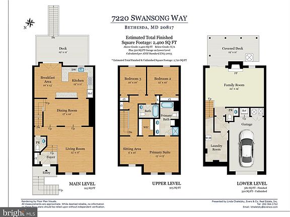 Seller works at home. Please call agent for appointment. Please wear masks, remove shoes or put on shoe covers and try to social distance. Positively immaculate and renovated 3 story townhome with garage in fabulous location. Gleaming wood floors on main and upper levels where you can almost see your reflection! Huge renovated table space kitchen with tons of cabinetry, granite and stainless appliances, and which leads to oversized deck and rear yard. Spacious bedrooms, and all baths have been redone, including the primary bath with two separate showers!! Lower level walkout has a wood burning fireplace and its own covered decking. There is a renovated powder room on this level and also the main. Laundry room is finished in bead board and has great storage. The garage is oversized and houses the second refrigerator and systems. Roof 3 mos. old. This home will call to the pickiest of buyers who will be thrilled with the easy access to Rts. 495 and 270 and to the fabulous Montgomery Mall and Cabin John Regional Park. Don't miss it!
