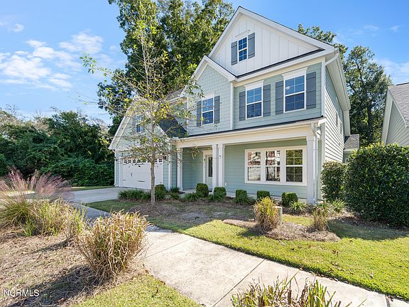 This stunning 5-bedroom, 3.5-bathroom home is located in the highly desirable Ogden School District, just minutes from Mayfaire Shopping and Wrightsville Beach. The formal dining room offers elegant touches like wainscoting and a coffered ceiling, making it perfect for entertaining. The open-concept living room features a cozy fireplace and flows seamlessly into the gourmet eat-in kitchen, which is equipped with a gas cooktop, stainless chimney hood, built-in oven, subway tile backsplash, and quartz countertops. The first-floor master suite provides a spacious walk-in closet and a luxurious walk-in tile shower, while upstairs offers four additional bedrooms, two full baths, and a versatile bonus room that can be used as a playroom, office, or media space. Outdoors, you'll enjoy a deck overlooking a peaceful wooded area, as well as a charming covered front porch. The neighborhood also offers family-friendly amenities, including a playground and a community hangout space. This home combines modern luxury with the ideal location for coastal living. Potential to ASSUME VA LOAN.! Close with Alpha Mortgage and receive half a percent credit of the loan amount to be applied towards closing costs!