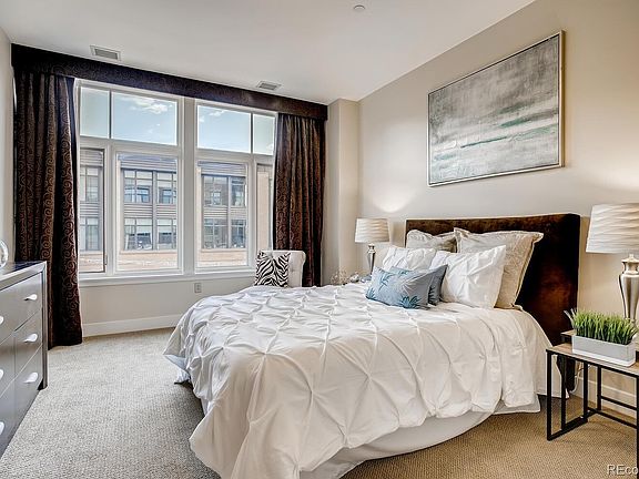 Enjoy a maintenance-free lifestyle in the heart of Lakewood. Located in beautiful Belmar Plaza. Tall wall of windows and high ceilings make this home light and bright throughout the main, open concept living area. Upgraded kitchen and hardwood flooring makes the space comfortable for hosting friends and family. Well appointed with stainless steel appliances, granite counters and bar height breakfast seating area. Large living area leaves space for dining and also room for a home office setup. Spacious five piece bathroom offers a large soaking tub with full tile surround, double sink vanity with freshly polished marble counter top, and separate shower. In-unit laundry conveniently located adjacent to the bedroom. Many parks nearby to take your dog for a walk or enjoy some fresh air, all without your daily maintenance. Secure underground parking with a heated ramp entry. The building is very well maintained. Many long-term owners in the building and this is the first time this unit is available for sale by the original owner. Large master bedroom with tall wall of windows to let the light shine in. Sliding pocket door to block off the laundry/bedroom area for added privacy. Large, walk-in closet provides plenty of storage for personal items. Enjoy all that Belmar has to offer right outside your door with a wide variety of restaurants, shopping, and entertainment.