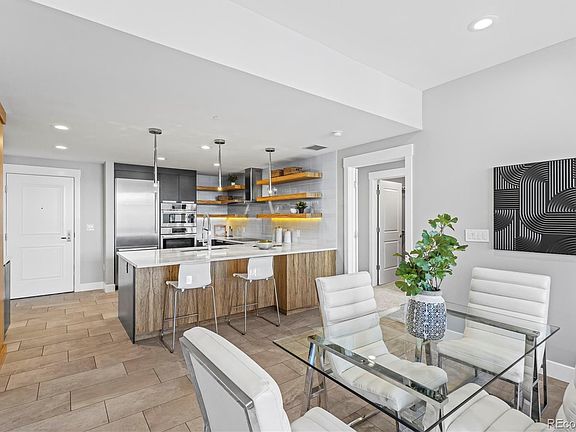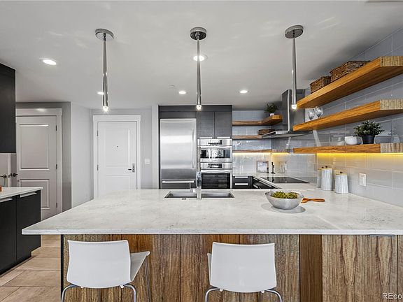 This beautifully remodeled 2 bed 2 bath condo is located in the heart of Lakewood right above the fun and lively Belmar Plaza! This unit was completely remodeled in 2017 with high quality/upscale finishes, absolutely perfect for those who love modern design. Enjoy beautiful summer nights on your covered balcony that overlooks the plaza, providing a front row seat to the many concerts and live performances that the Belmar hosts throughout the summer. During the winter you will have unbelievable views of the Belmar Ice Skating Rink along with all the festive holiday lights. As you step out the front door of the building you are immediately greeted by the dozens of restaurants, bars, shops, and grocery stores (Whole Foods!!) that Belmar has to offer. This central location provides a direct route to 6th Avenue for easy access to Downtown Denver and I-70 for those who like to spend weekends up in the mountains. Buyers will enjoy a spacious kitchen that features premium stainless-steel appliances including an induction stovetop, convection oven, custom hood, microwave, wine cooler and beautiful granite countertops. The large primary suite has a walk-in closet, a completely updated en-suite 5-piece bathroom, and room for a seating area if so desired. Second bedroom is also spacious and offers an updated en-suite ¾ bathroom and two large closets. Laundry closet includes stackable washer and dryer in unit. HOA does an excellent job maintaining the building. HOA includes heating, a/c, water, trash, snow removal, and building maintenance. Additionally, this building has a temperature-controlled, underground parking garage with stair access as well as two large elevators for easy move-in move-out. Don’t miss this incredibly rare opportunity for a fully remodeled, turn-key, Belmar Plaza condo!