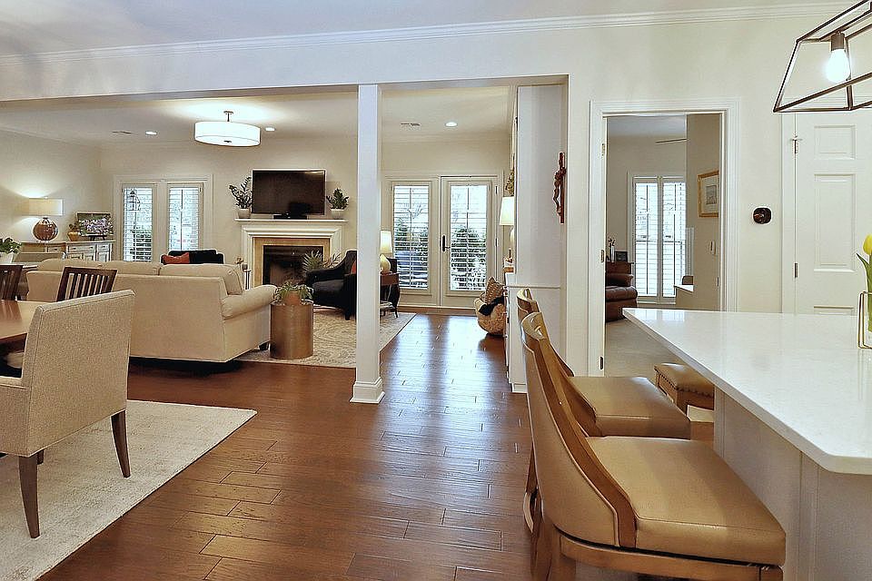 Welcome home to this beautiful first floor Normandie Court condo in the heart of Prairie Village. Completely remodeled for the sellers in 2019 by award-winning Remodel Moore LLC, it is one of only a few walkout units in this highly-sought boutique development. It boasts plantation shutters, beautiful crown molding, window-filled rooms, new lighting, and plenty of storage throughout. Open floor plan includes living area with gas fireplace, built-in cabinets/shelving, dining room, and secure Anderson door to the patio. Custom kitchen features elegant tilework, a pantry, soft-closing drawers and cabinets, walnut finishing, quartz counters, and an oversized island. Master bedroom features his and her custom California Closets systems. Laundry room off the master bath. Second bedroom, also with a custom California closet and built-in desk, doubles as a den. Walk out to the privacy of your large patio featuring an under-deck ceiling for protection from the elements. From the interior door, descend one flight of steps (or elevator) to a climate-controlled garage with two convenient reserved parking spaces and two large storage units. Or, go through a private gate to Windsor Park with walking paths, picnic shelters, tennis courts, and more. Within a short walk to the shops and restaurants of Prairie Village Shopping Center, this is the best of maintenance-free living! Willing to buyer’s agent fee. Call 913-706-4587 for appointment.