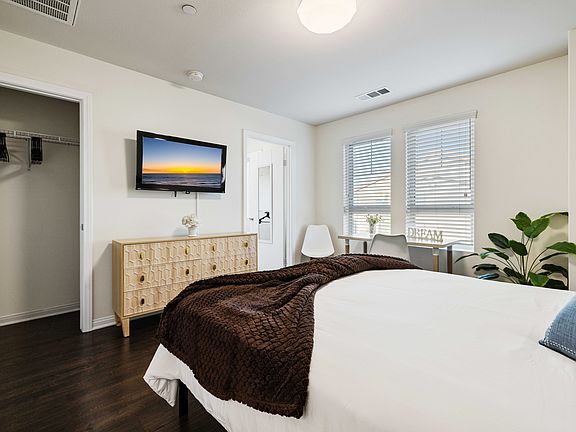 Enjoy an open-concept living space with no carpet, warm hardwood-style flooring, and a bright kitchen equipped with stainless steel appliances, granite counters, and ample cabinetry. Thoughtful touches like designer accent walls, contemporary lighting, and stylish bedroom setups make every room feel elevated.
