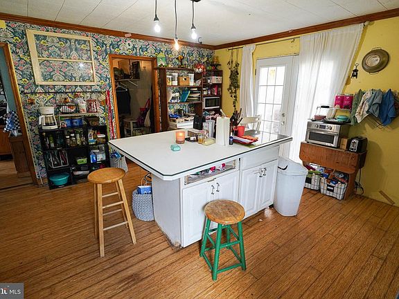 Roomy 3-4BR/1BA farmhouse on a large 1.1+ acre homesite surrounded by forest on 3 sides. Home has lots of living space, and plenty of charm - but needs work to bring it to its full potential! The metal roof is about 10 years old, heat pump for the upstairs; natural gas for downstairs, but sellers use the pellet stove. Some replacement windows - upstairs and in the living room. The living room and kitchen were gutted and insulated in approximately 2008. Plenty of parking in the recently-expanded driveway. Sizes, taxes approximate.