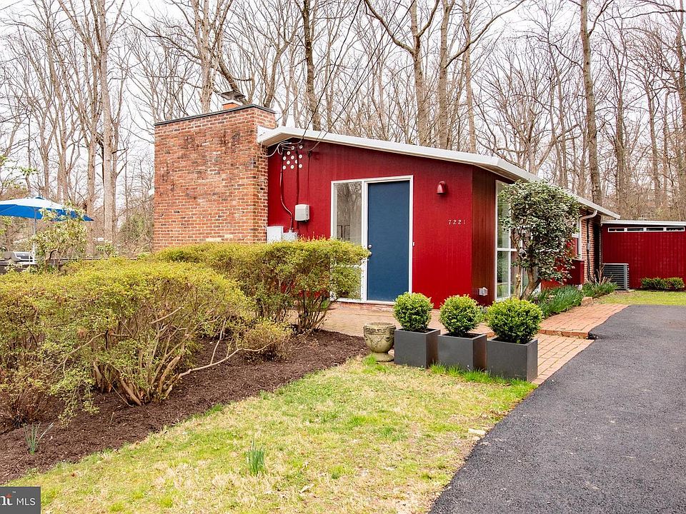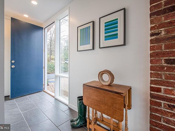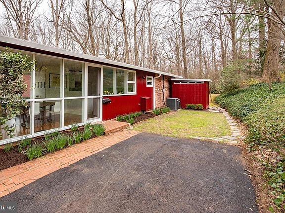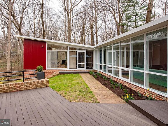 Fabulous mid-century modern home in Hollin Hills designed by renowned architect Charles Goodman with two-level addition. Three large bedrooms including master bedroom addition with soaring ceilings, floor to ceiling windows and sliding glass doors to deck. Recently remodeled full bath in the addition with frameless shower, custom tile and new window. Completely remodeled large kitchen open and bright. Den is perfect for working from home, plus office with built-in book shelves. Lower level addition finished to create bright family room with new windows, door to yard, tons of storage and fabulous vintage spiral staircase. Front entrance enclosed to create foyer with coat closet. Upgrades throughout include floors, double pane windows in most of the house, roof replaced, HVAC, Hot Water Heater...the list goes on and on! Premium lot, nestled in the trees on more than one-half acre backing to park, with amazing views, patios and decks from every side.