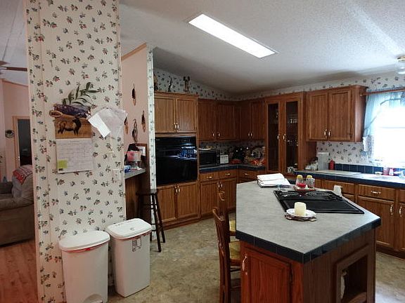 Really nice, well maintained double wide home with a 15x16 sunroom addition. There is a tall carport especially made to house an RV and it has its own separate septic and electric hookup. Established yard with an array of foliage. The kitchen has an island and a lot of cabinet and cabinet space. It is a split and open plan given to entertaining. An emerged pump was installed in 2014. A great attraction is the 17x17 2 story sorage and utility building. The ramp does not convey.