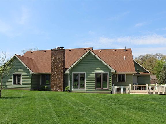 Amazing immaculate ranch on a short cul-de-sac in Pine Hollow with 3 bedrooms 3.5 bath offers 2400 Sq Ft above on a finished basement. Lot is just over a half acre and includes amazing pond views in back for enjoyment. Front porch allows ample seating. Deck in back off of sunroom. The Foyer has hardwood and opens to the Formal dining room and the living room and stairway to the basement. The Living room boasts high cathedral ceilings, has a stone fireplace framed by two windows and room is open to the breakfast area & kitchen. The large kitchen is great for gatherings includes can lights, raised ceiling, Miller Cabinets and Quartz Countertops with Ceramic backsplashes an island and all the appliances covered by a HMS Warranty. A Four season Sun porch off of the breakfast area that is light and bright and overlooks the pond with lighted fountain. Large master suite with amazing master bath recently remodeled has beautiful ceramic shower w/ large glass door-separate jetted tub, and ample roanoke cabinetry for his/hers sinks. Second bedroom has cathedral ceiling and makes a nice office. Finished Basement includes a huge craft room, a Full bath, a family room with stone fireplace, a rec room with pool table (stays), and a large mechanical room with workshop. Oversized 2 car garage with storage room above with 8' ceilings. updates include, Kitchen remodel with new light fixtures, countertops, backsplash, porcelan tile floor, Laundry room remodel with sink, cabinetry, All new windows w/ lifetime guarantee (transferable) Newer high Efficiency furnace and AC. Additional insulation in attic. New sprinkler control. New sump pump w batt back-up.