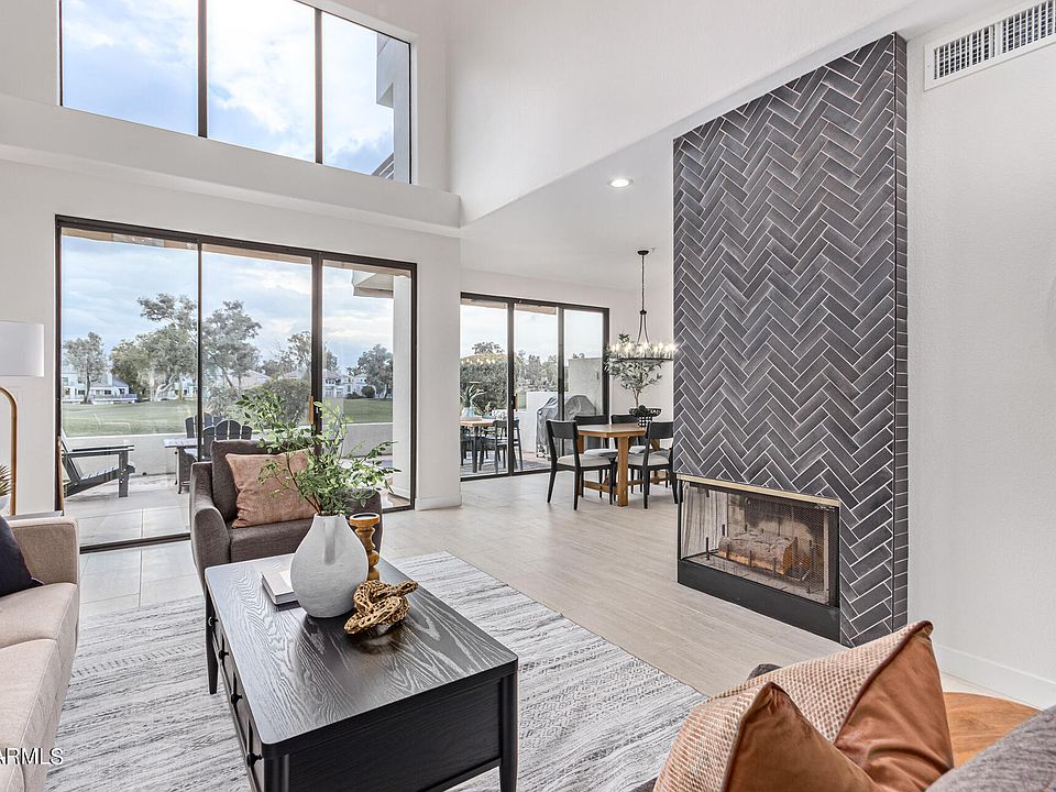 Let opulence & luxury welcome you home to this rare, double-fairway facing lot! Panoramic views of the award-winning, private Gainey Ranch golf course and McDowell Mountains. Once used as an Arabian Horse Ranch, this property is now a resort-style, master planned community. Remodeled 2 bed 3 bath home + loft has a stunning spa-like, contemporary style. Gourmet kitchen features new cabinets, Calacatta Quartz and fired-earth backsplash. All new flooring, paint, lighting, baths, and an eye-catching, herringbone fireplace. Watch the sunset on the large patio or utilize the Estate Club's Olympic pool, 7 tennis courts, fitness facility, classes & more! 24-hour patrol & guard-gated security. A rare Scottsdale enclave where upscale dining, boutiques, & resort-style standards exceed expectations!
